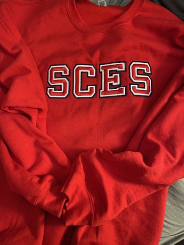 SCES sweatshirt-red, navy outline, white base, red center